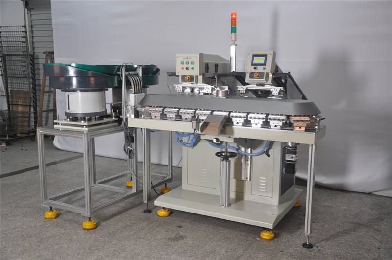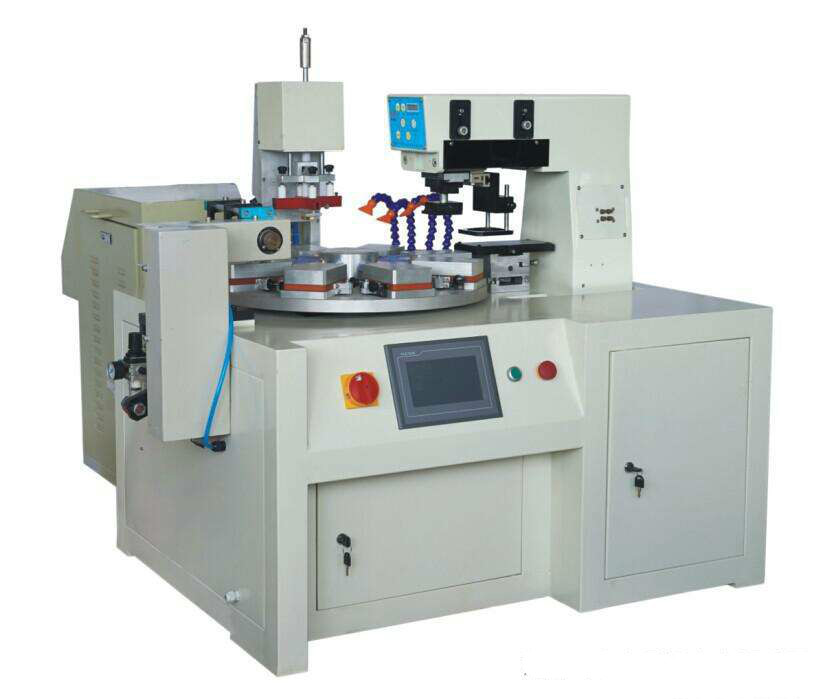 1、 印刷速度比轉(zhuǎn)盤機(jī)慢,但印刷工件可以大一些,六個(gè)顏色一次套色印刷完成。